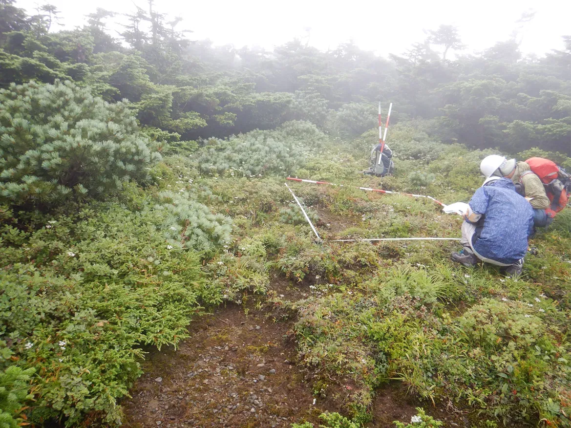 シカ・イノシシなどによる、下層植生や高山植物などのへの影響を評価し、対策を提案します。