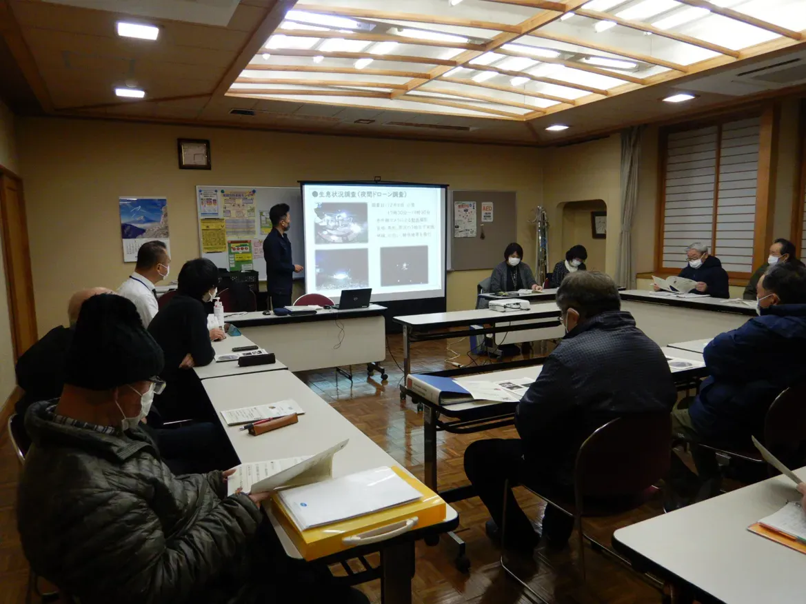 野生動物の種の保全と生態系への影響や人との軋轢の軽減のため、国や地方自治体が実施する保護管理計画に係る基礎調査や計画策定支援を行います。また、農林業や生活への被害を最小限に抑えるため、対象地域における鳥獣の生息状況や生態とともに、地域の状況を踏まえて出没要因を評価し、地域に合った効果的な対策を提案・実施します。