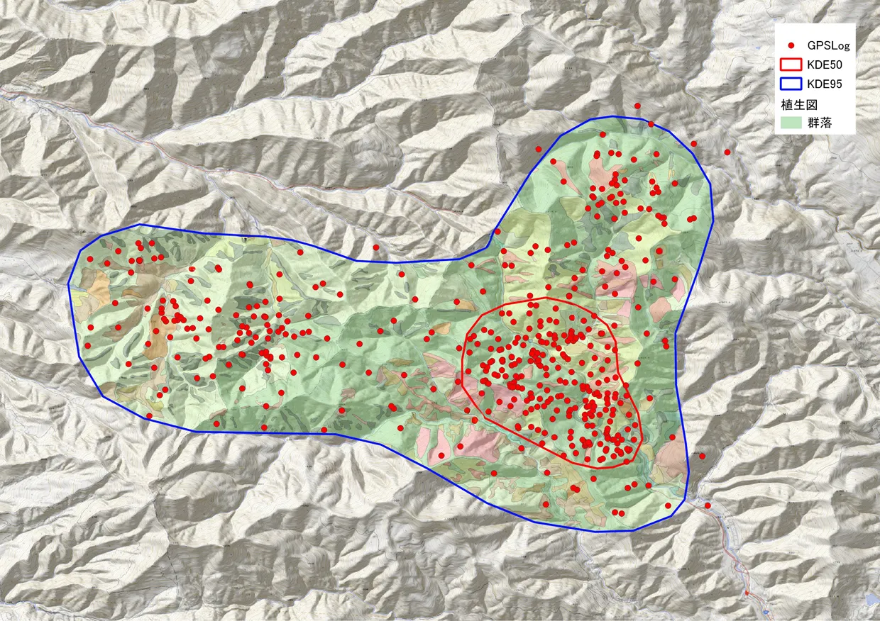 行動特性の分析、リスク評価(行動圏・越冬地解析・出没リスク解析)